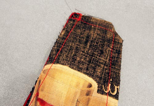 8. Remove from machine. Move to the other end of the top opening. Start stitching again, down one side, pivot at the corner, stitch across the end, pivot at the corner, and stitch along the remaining long side to the bottom opening. Clip all four corners at a diagonal, being careful not to clip into your seam.