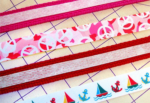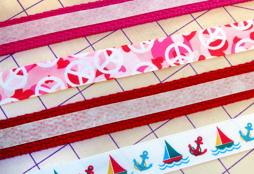 - 1 yard of 1″ colored cotton webbing: ours came from ours came from jcaroline creative!, we chose red and fuchsia