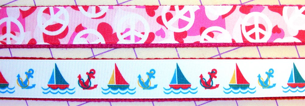 - 1 yard of 7/8″ decorative ribbon: ours came from The Ribbon Retreat , we used Anchors Away in white and Peace Camo in Pink