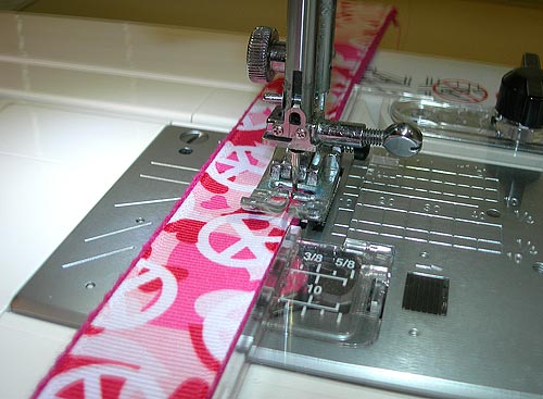 - Thread your machine with thread to match your webbing in the bobbin and invisible thread in the top.