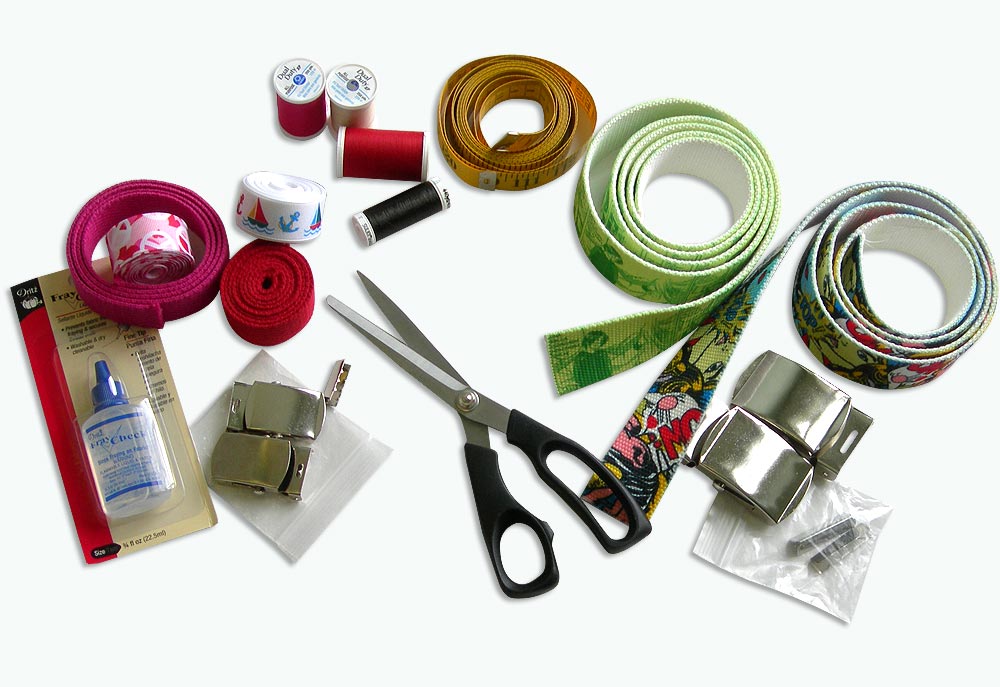 The belt-wearer’s size, and how he/she will wear the belt, determine the amount of webbing and ribbon needed. The best way to judge is to measure the waistband of the pants on which the belt is most likely to be worn. To this measurement, add 8″. For the kids’ belts, you only need to add about 5″ to the pant’s waistband measurement.