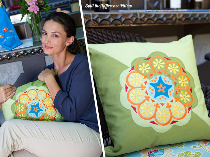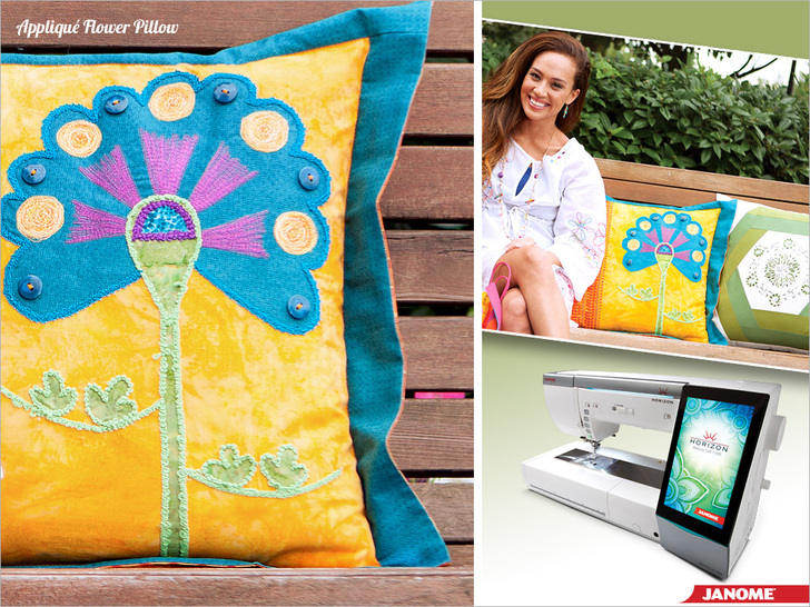 We’re still lucky enough to be playing with the brand new Janome Horizon Memory Craft 15000, which has been a welcome guest in our studios over the past few weeks. It has to go home to Janome America soon, but before we box it up, we spent some time on the new MC15000 website, browsing their cool Project Book. It has a number of fun ideas, but we were especially captivated by the pillow techniques and tutorials. Looking at the samples a machine has created is a great way to determine if it’s the right model for you. Our favorite was the Split the Difference pillow with its dramatic embroidered center medallion. When I see stitch precision like this, it makes me want to embroider everything that isn’t nailed down.