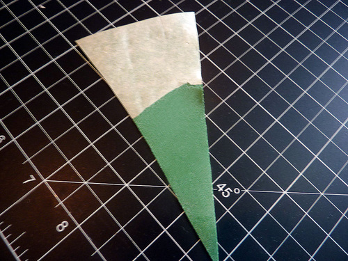 - Place the appropriate triangle pattern upside down on the paper side of the fused product and trace around the pattern.