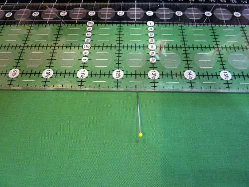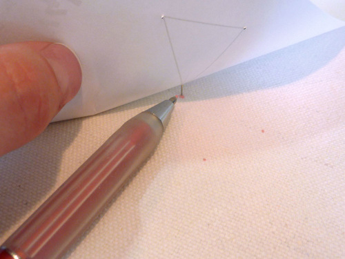 - Gently lift up the template and use your fabric pen or pencil to make a small dot at each of the pin points.