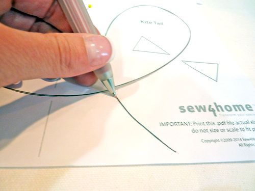 - Using a fabric pen or pencil, trace along the cut line to form the guide line for the kite tail.