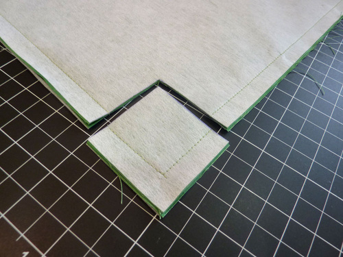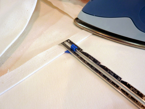 NOTE: If you have trouble with bulk in the bottom corners, cut the corners at a diagonal, trimming away about ½” at the point and re-fold.