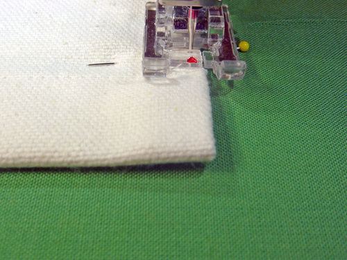 - Re-thread with thread to match the exterior fabric. Stitch both sides and across the bottom, using a ½” seam allowance. Remember to pivot at the corners.