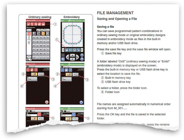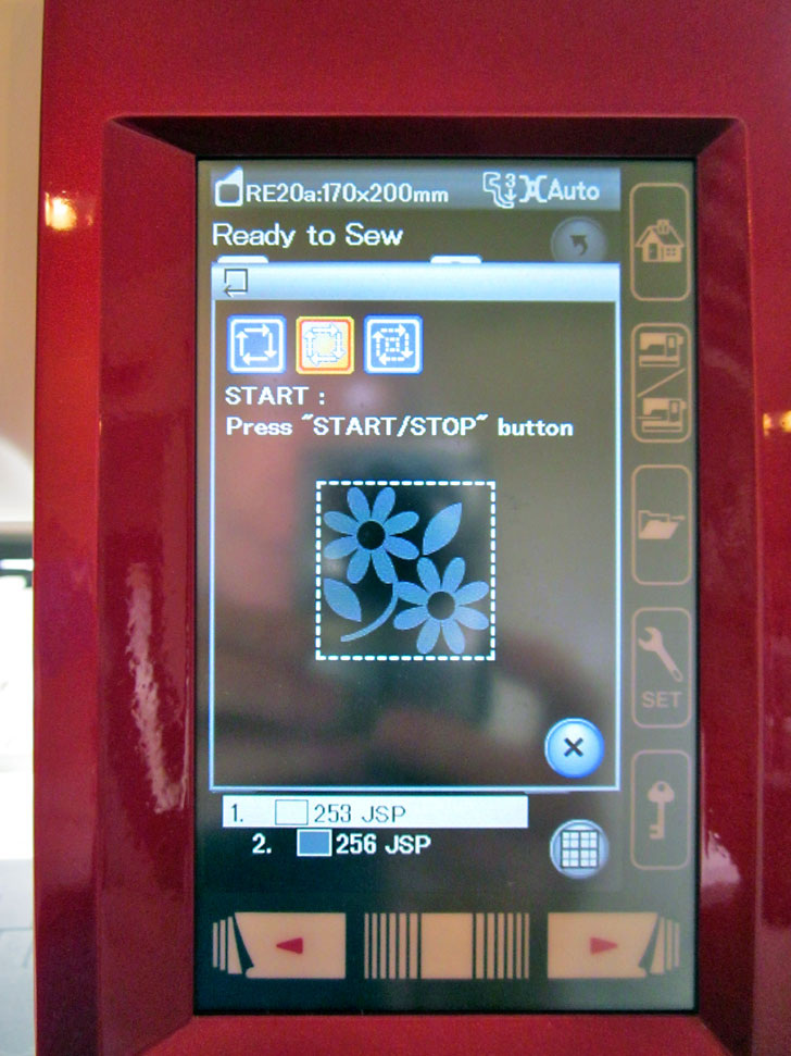 As mentioned, we used the Janome Memory Craft 9900. The manual includes easy step-by-step instructions for all types of file management. In summary here are the steps for bringing in a design via USB flash drive: