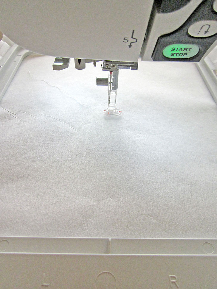 - Hoop the sticky stabilizer. Remove the paper from the stabilizer to expose the sticky surface.