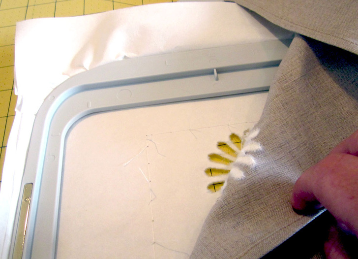 - Raise the needle and smooth the placemat into place.