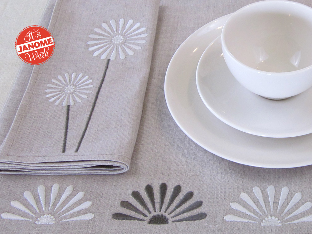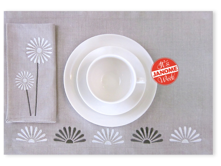 Embroidery can take ordinary home décor items and turn off-the-shelf into off-the-charts. In this case, we purchased a simple set of linen placemats and napkins in a neutral tone to which we’ll add beautiful custom embroidery. Our placemat measures:19¼” wide x 13½” high; our napkin measures 17¾” x 17¾”.