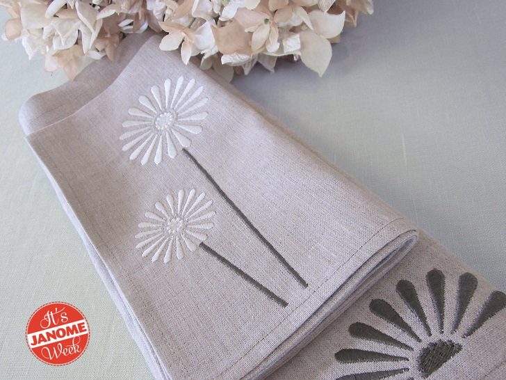 NOTE: Creative team member, Michele Mishler digitized two crisp, clean floral designs for today’s sample. She was kind enough to provide her designs as free embroidery downloads. Since we are working with our Janome models, we have the free download in the Janome .JEF file format only.