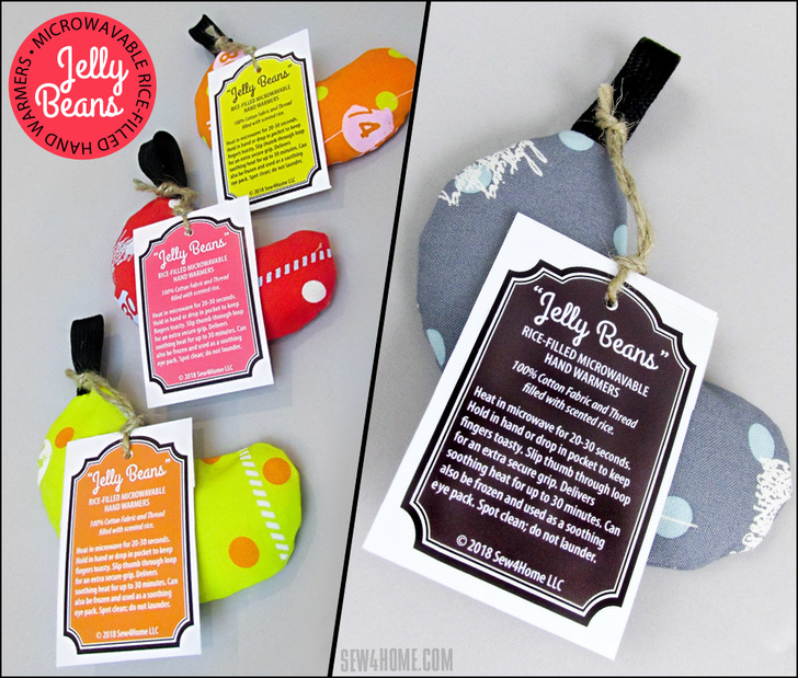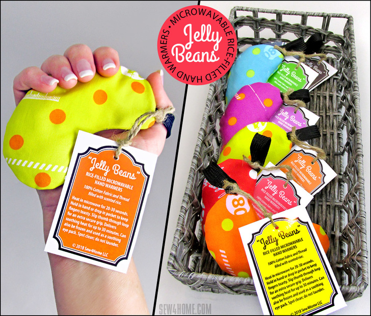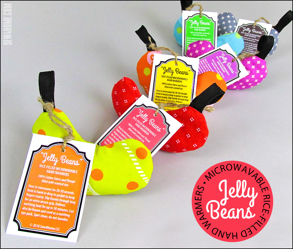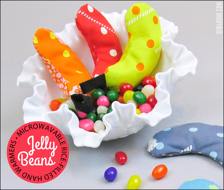 These cute Jelly Beans are an excellent gift idea that will warm the hands – and the heart – of the recipient. You can set up an assembly line and whip out a Bundle o’ Beans in a single afternoon. They’re fast, inexpensive, and fun.