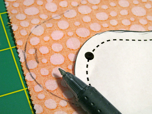 - Place the pattern on the two-layer stack and trace around its outer perimeter with a fabric pen or pencil.