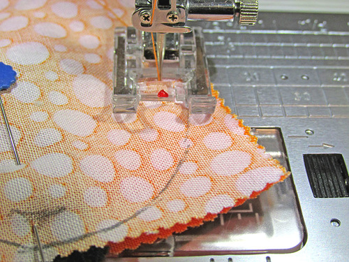 - Remember to start and stop the seam at the marked pins, leaving that approximate 2” opening for turning and filling.