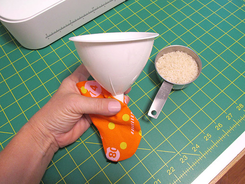 - Using a funnel or similar, carefully pour the rice into the opening of the Jelly Bean.