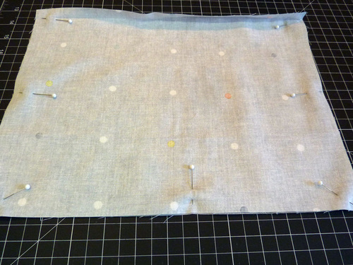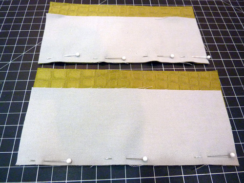 - Find the appropriate lining panels. Place them right sides together and pin along both sides and across the bottom.