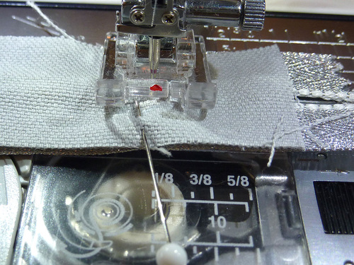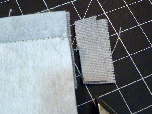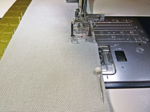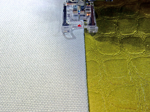 NOTE: We went to the trouble to change our thread color to match the panels. This is optional, but does insure that when the pouch is turned right side out, the seams are a nice match in case any of the thread is visible.