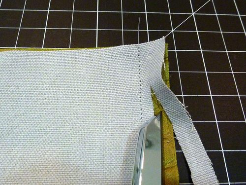 - Press open the seam allowances, clip the corners, and grade the seam allowances, trimming back one side of the seam allowance for a smoother finished edge. Leave the exterior wrong side out.