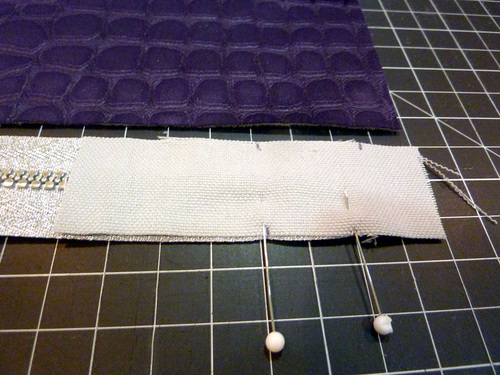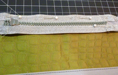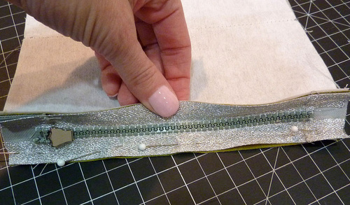 - Pin the layers together along the edge of the zipper.