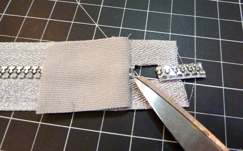 Add a flashy zipper and a shiny zipper pull to finish things off. We used faux metallic zippers; they are really plastic! You could also opt for a real metallic finish, an interesting color for the teeth, or even a patterned zip.