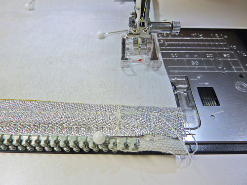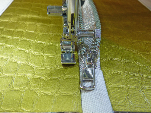 - Stitch across the top of the panel through both layers (fabric and zipper tape).