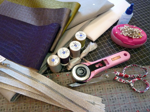 - THREE matching metallic zippers: 12″, 9″ and 7″; we originally used silver colored plastic “faux metallic” zippers