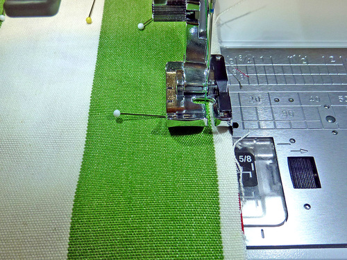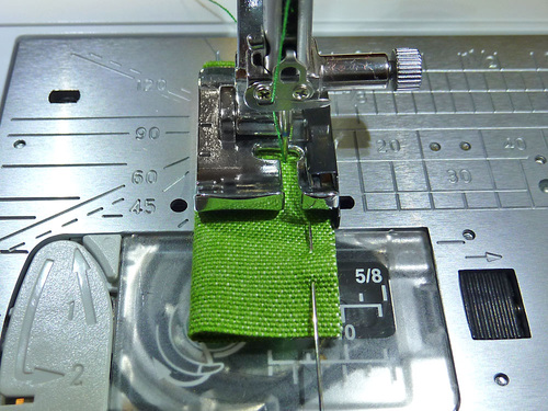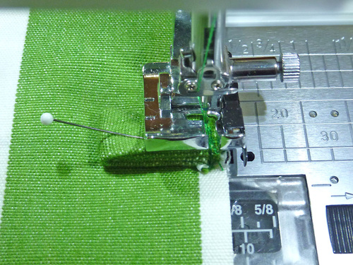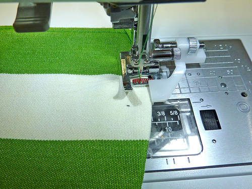 - Using a ¼” seam allowance, stitch the short seam. We used our Janome Quarter Inch Seam foot. The ends remain open and raw.