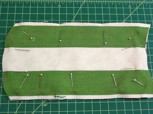 - Un-snap and pin the along both sides through all the layers.