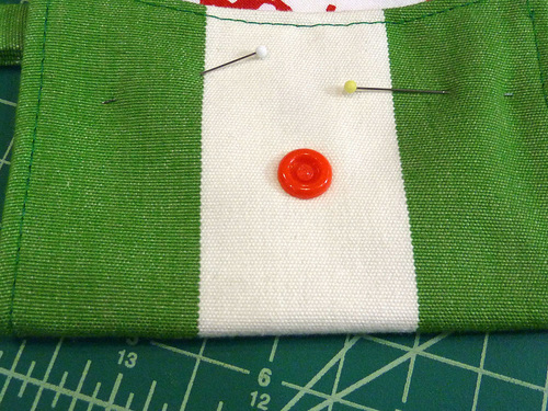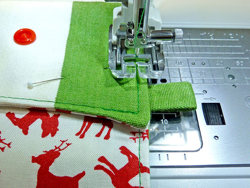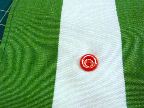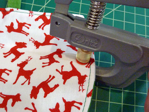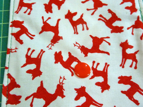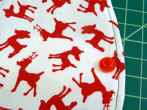 The snap closure on the flap is also optional. You could use a button and buttonhole or even Velcro®. But, we thought cute plastic snaps were the perfect bright and happy choice to match our colorful holiday fabrics. We chose a plain red snap cover, but there are lots of fun colors and many of them feature little embossed designs. If you are new to working with plastic snaps, we have a full step-by-step tutorial. Our tutorial outlines working with Babyville brand snaps, but the process is similar for most plastic snap options. You could also use a standard metal snap, and of course… we have a step-by-step tutorial for that too.