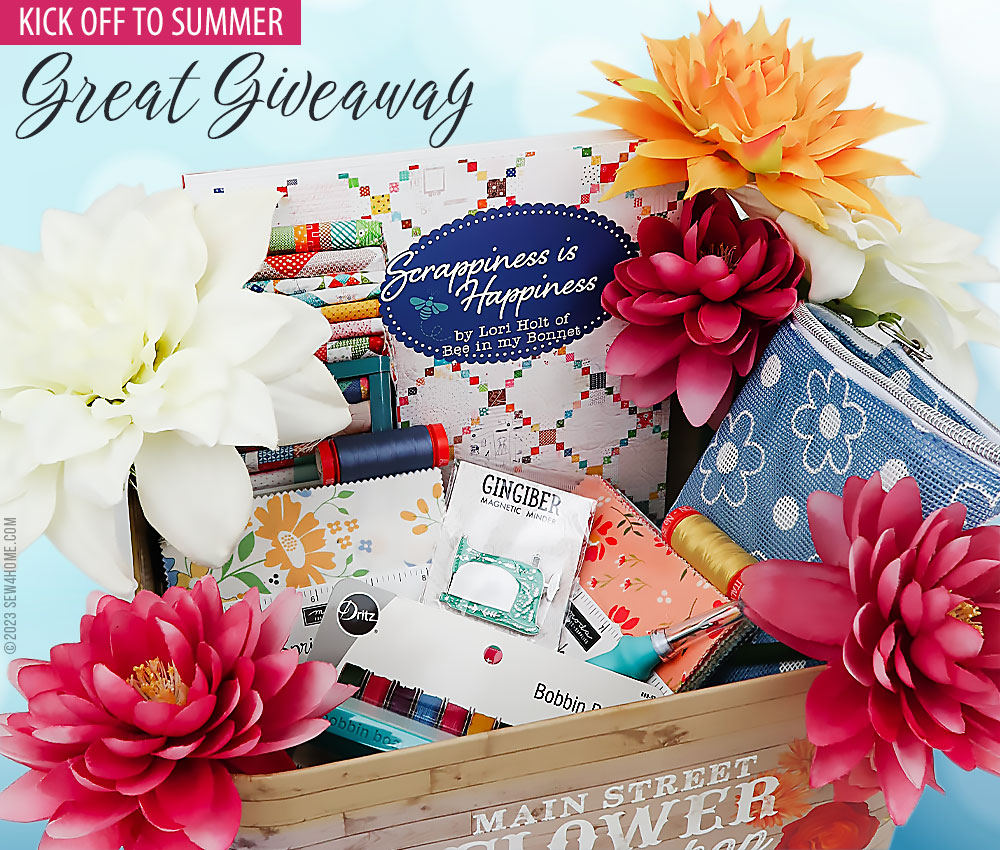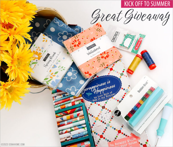 We’ve put together a Great Giveaway package to help you get ready for your Summer Sewing. ONE lucky S4H enthusiast will win a bundle of sewing and craft wonderfulness, courtesy of several of our incredible sponsors: Fat Quarter Shop, It’s Sew Emma, Dritz, and Aurifil Thread.