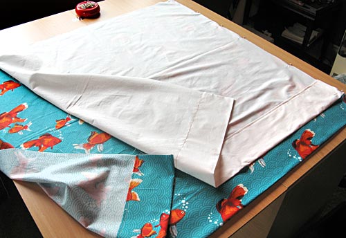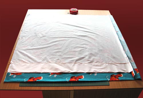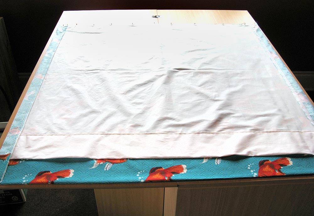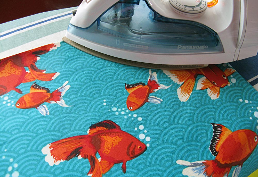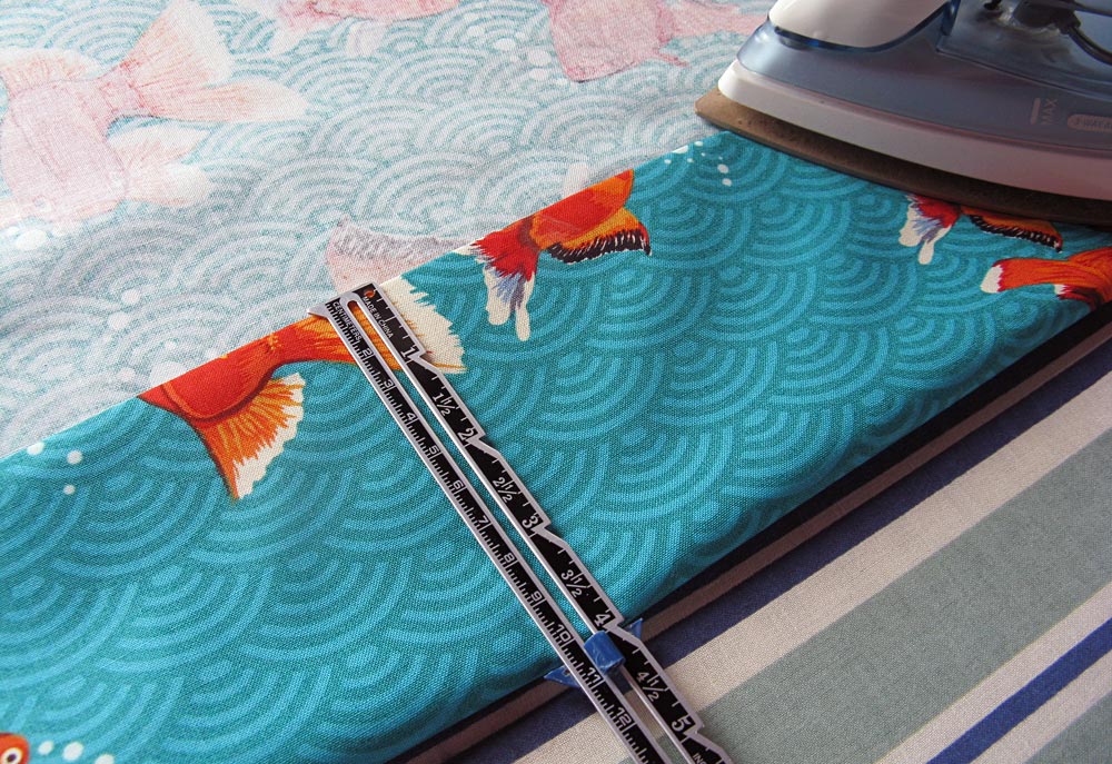 NOTE: If your fabric has a directional pattern like ours (our fish bubbles need to be going up), make sure you are hemming the correct side.