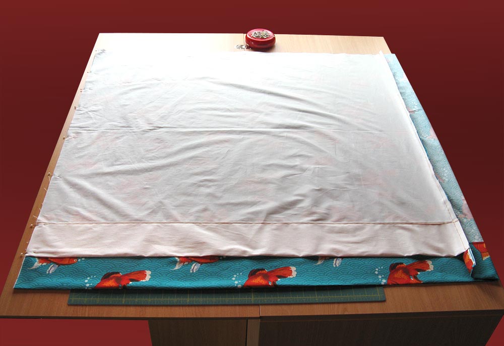 Our total cut length of the front fabric was 45¾”, so the cut length of the lining will be 45¾” – 3 = 42¾”.