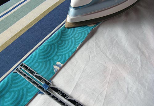 - Fold and press the bottom hem of the curtain panel 3½”, then fold and press again 4″.