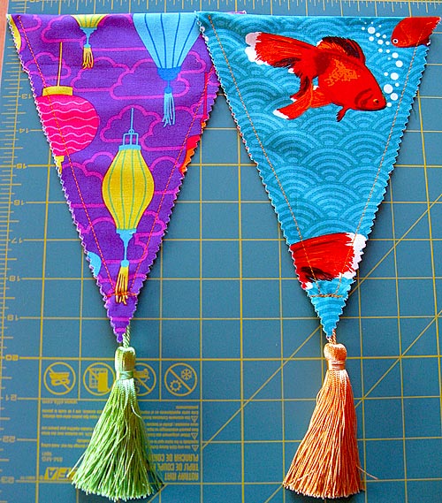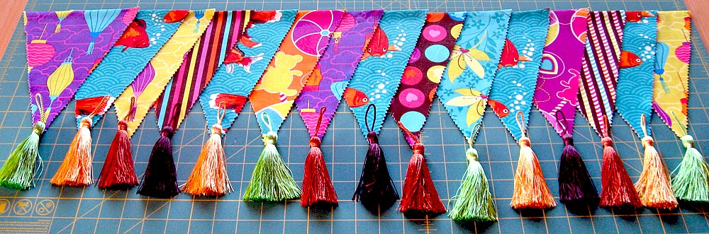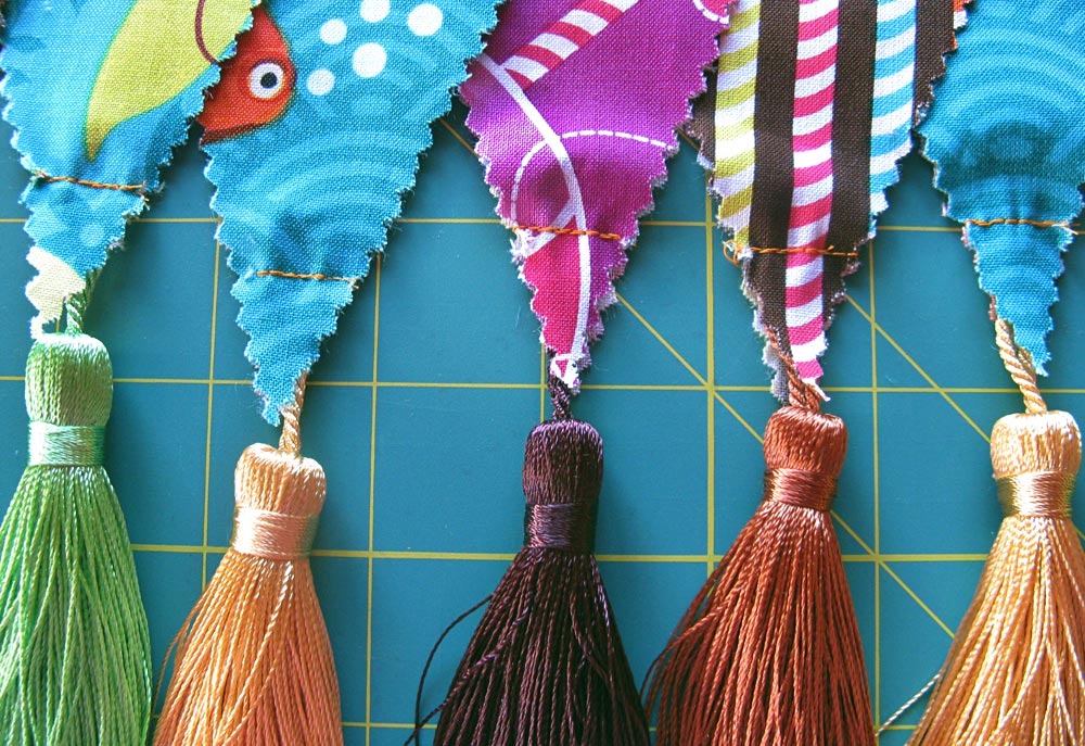 - Arrange the pennants in order, mixing and matching to your best effect, and choose a tassel to go with each.