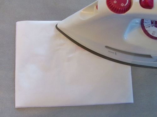 - Following manufacturer’s instructions, adhere the fusible web to the wrong side of the cotton knit.