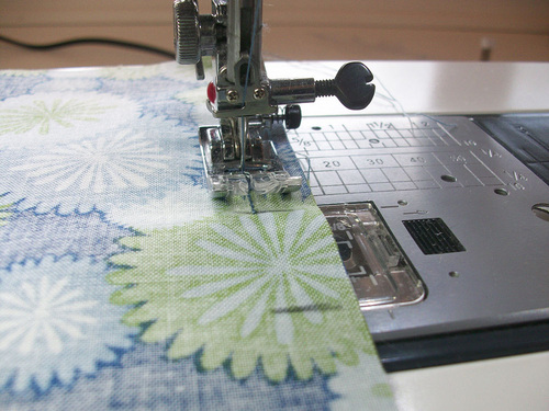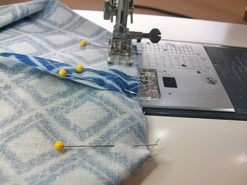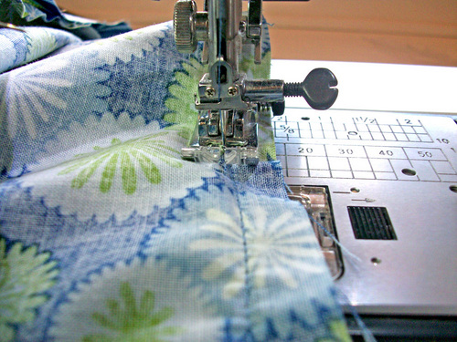 - Using a ½” seam allowance, stitch both sides and across the bottom.