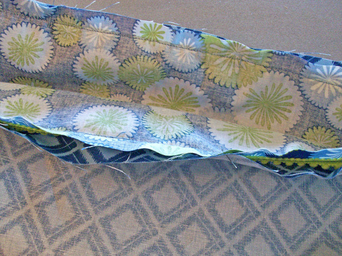 - Press the seam allowance up toward the top of the duffle.