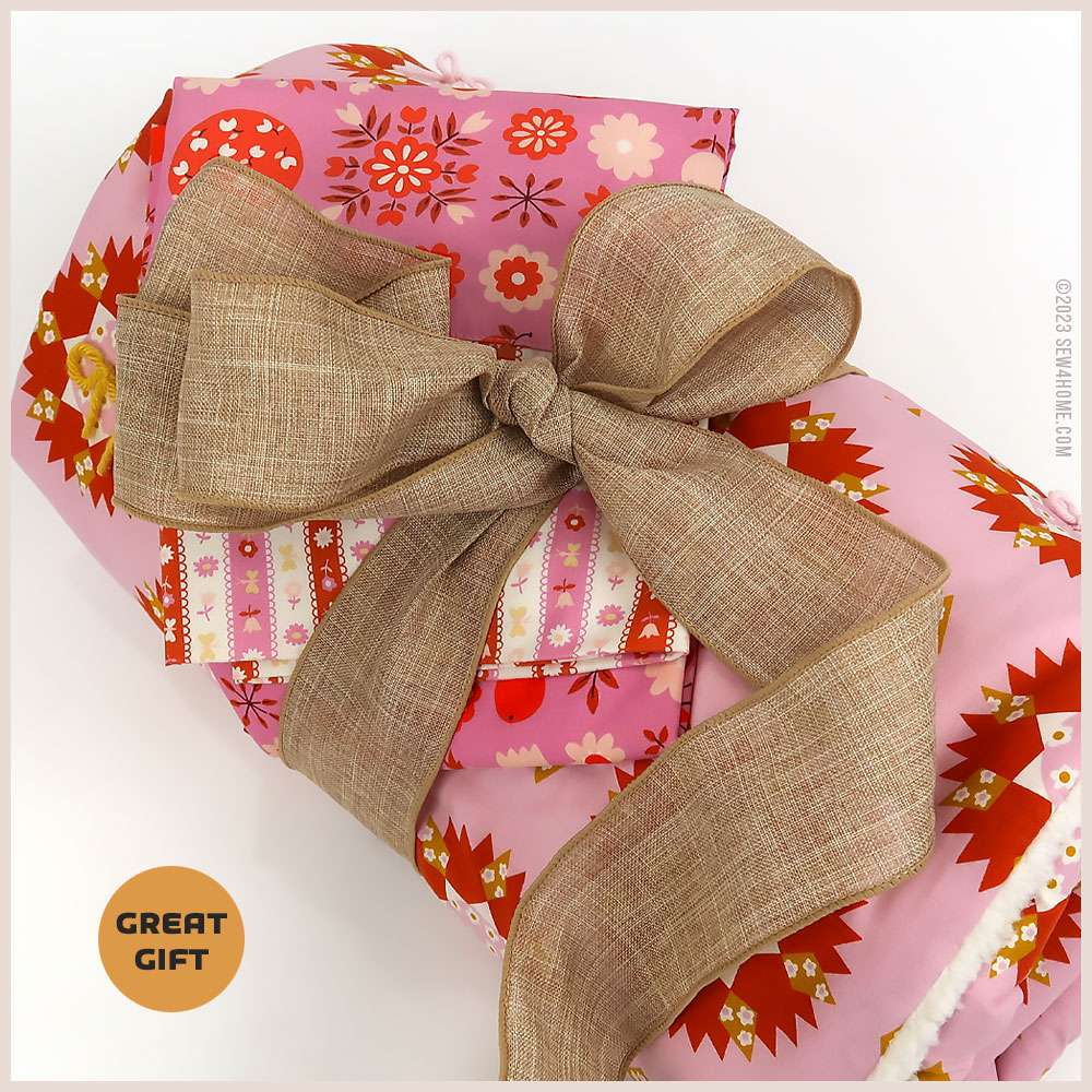 Both elements are beginner friendly, and the techniques you’ll learn (if new) can be used down the road, like how to hand-tie and how to create the overlapping ends of a pillowcase.
