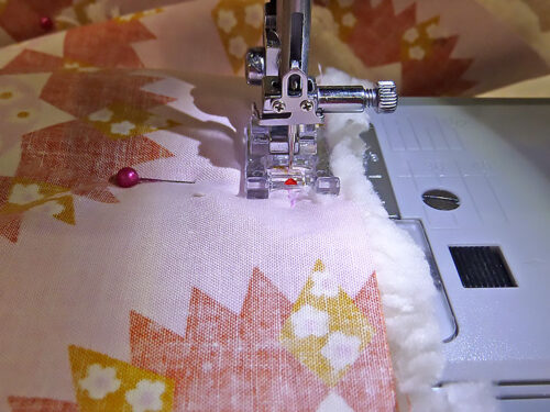 - Pin around all four sides, leaving an approximate 6” opening along one side for turning right side out.