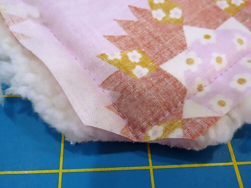 - Gently push out each corner. It won’t be a sharp point because of the loft of the sherpa, but push it out as best you can. A blunt knitting needle, chopstick or point turn all work well for this step.
