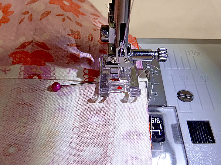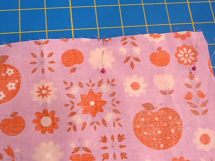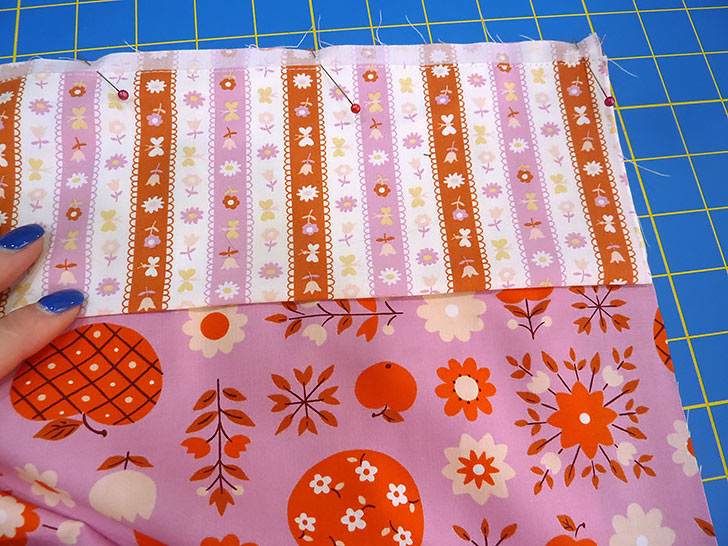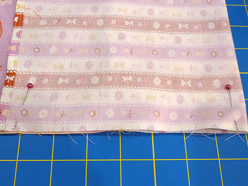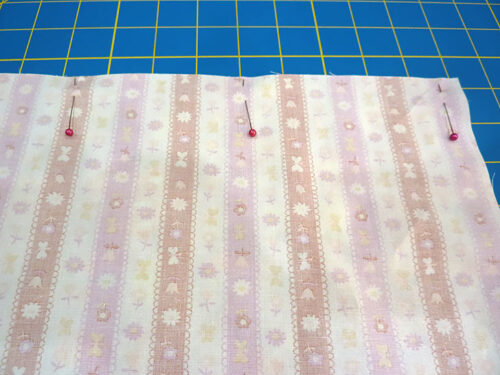 NOTE: If you are working with a directional print, make sure you are pinning together the top of the main panel with the bottom of the end panel. - Pin in place across the 21” width of each layered panel.