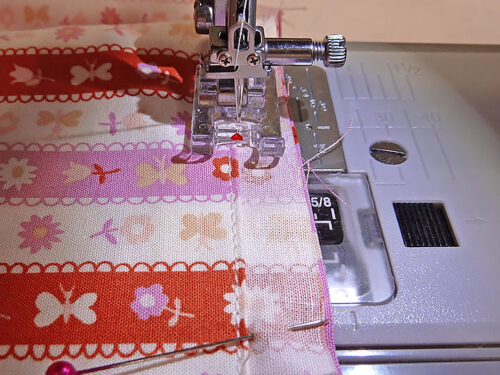 - Align the raw side edges of the panels as well as raw bottom edges. Pin along both sides and across the bottom.