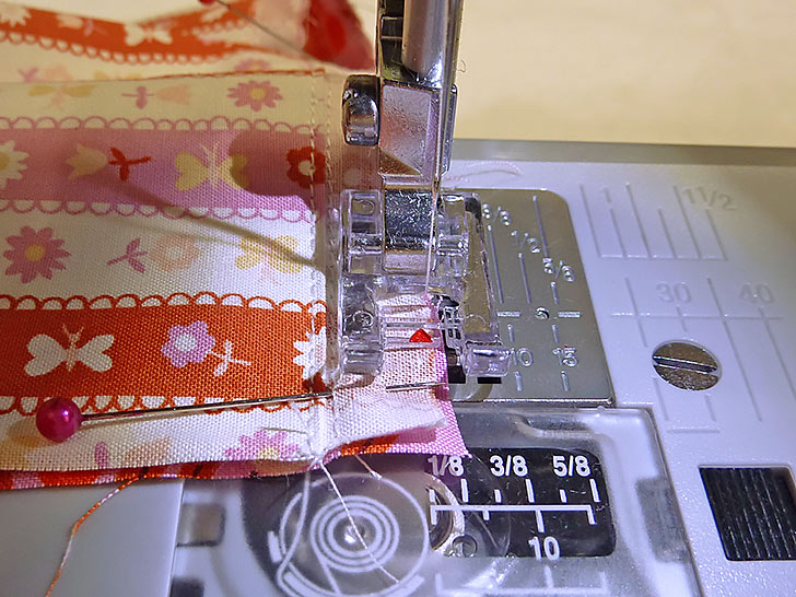 - Using a ½” seam allowance, stitch together. The longer end panel is shown below.