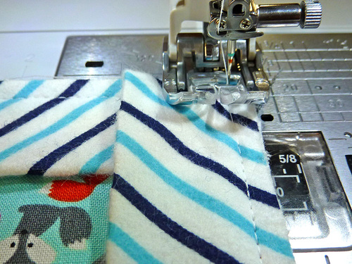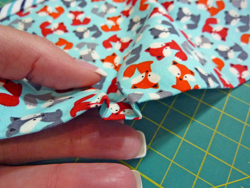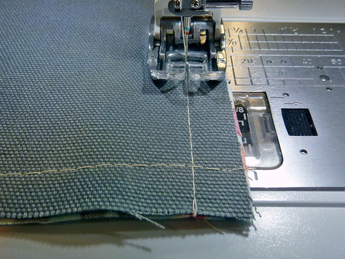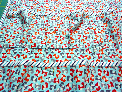 - Be sure to back tack at the beginning and end of each pocket panel, and be careful to keep all your layers flat when stitching over your pleats along the bottom.