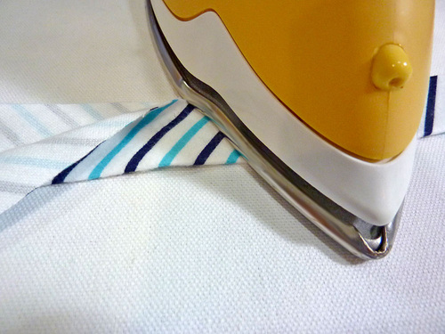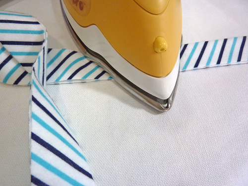 - Press the entire long binding string in half lengthwise, wrong sides together.