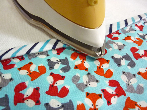 - The binding should now be a perfect fit against the caddy. Press this loose section of the binding in half wrong sides together (into its original shape).