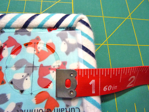 - Repeat with your ruler 1″ in from the binding seam along the right side of the caddy. This represents the extreme right side of the pocket panels.