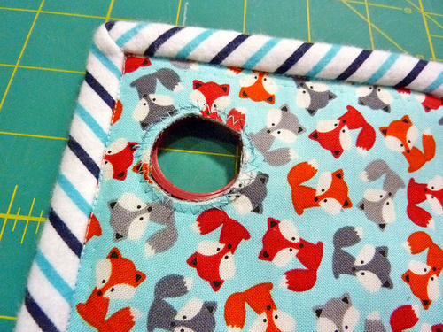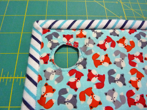 - Finish sewing binding to the caddy from the point where you stopped to the point where you started, matching your seam lines.