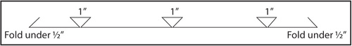 - With the pocket division lines marked, measure for the center point of each pocket panel’s three pleats. To do this, from the left folded edge of the pocket panel, measure 3½” to the right, 10½” to the right and 17½” to the right. These are the three center marks for your pleats
